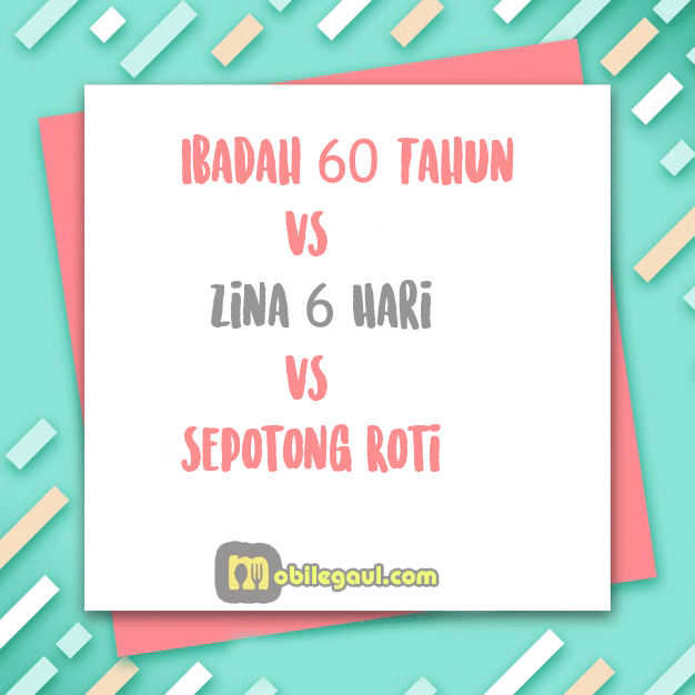 Maka Allah memerintahkan malaikat untuk menimbang antara amalannya selama 60 tahun dan zinanya selama 6 hari, ternyata lebih berat zina selama 6 hari, lalu Allah memerintahkan menimbang zinanya 6 hari dengan dua potong roti, ternyata lebih berat dua potong roti.